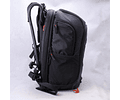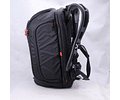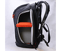 Un diseño único y varios bolsillos de acceso le permiten girar la mochila hacia la parte delantera y llegar a su cámara sin quitar la bolsa de su cuerpo. La parte superior de la bolsa se abre para acceder a su cámara de disparo, mientras que el bolsillo principal en la parte delantera de la bolsa proporciona acceso al compartimento principal. Dentro del compartimento principal hay divisores móviles y el Sistema de Protección de la Cámara (CPS). El CPS está hecho de tres capas para proporcionar la máxima protección: un exterior de tela cepillada, una espuma que absorbe el impacto y un tablero de refuerzo estructural. El diseño del CPS concentra su protección en el centro de la bolsa, donde más se necesita.